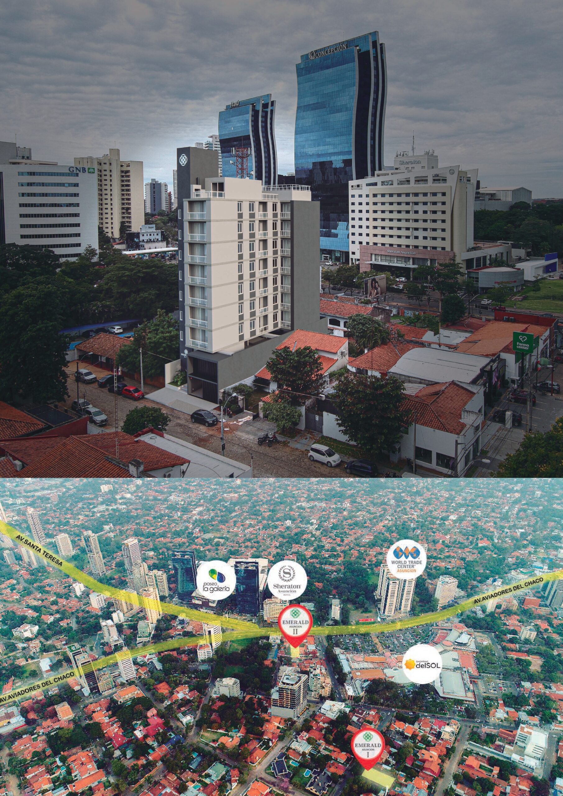 Emerald II Asunción es una torre de departamentos de alta gama. Su ubicación es estratégica: en pleno centro de la ciudad, a 30 metros del Shopping del Sol. Ideal para vivir o alquilar. Inversión segura, excelente rentabilidad y financiación.